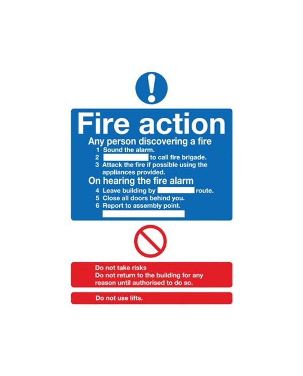 Safety Sign Fire Action Words A4 Self Adhesive FR03550S