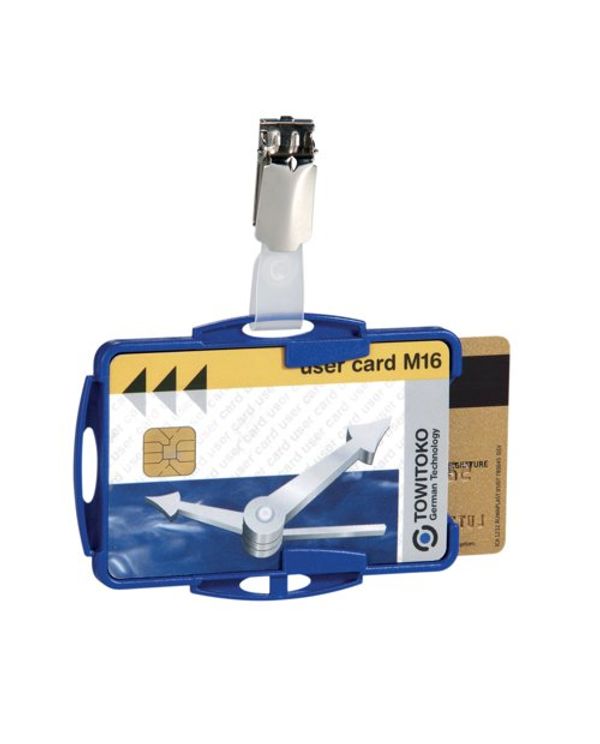 Durable ID Card Holder with Clip for 2 Cards Blue (Pack of 25) 8218/06