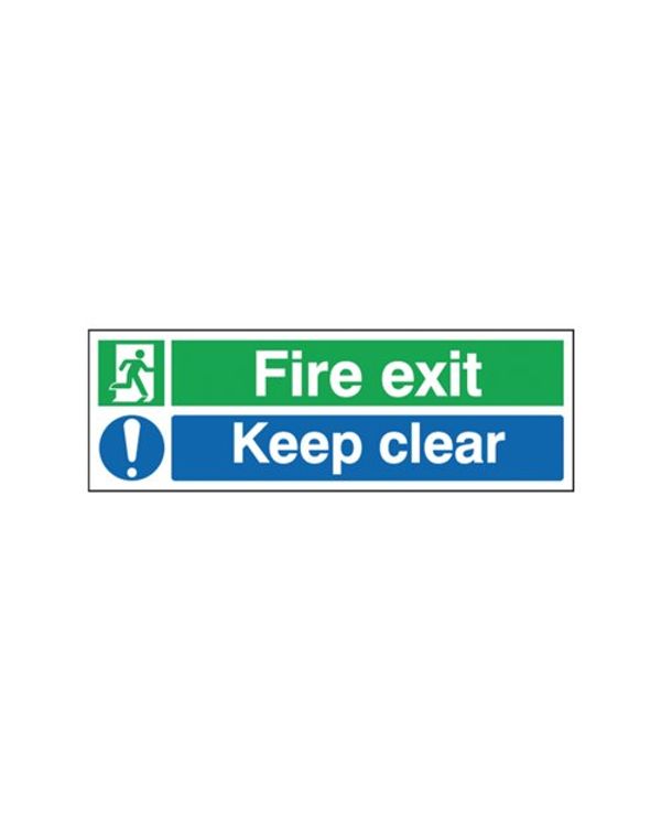 Safety Sign Fire Exit Keep Clear 150x450mm Self-Adhesive EC08S/S
