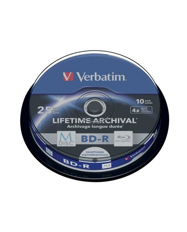 Verbatim M-Disc Blu-ray BD-R 25 GB 4x Printable Spindle (Pack of 10) 43825