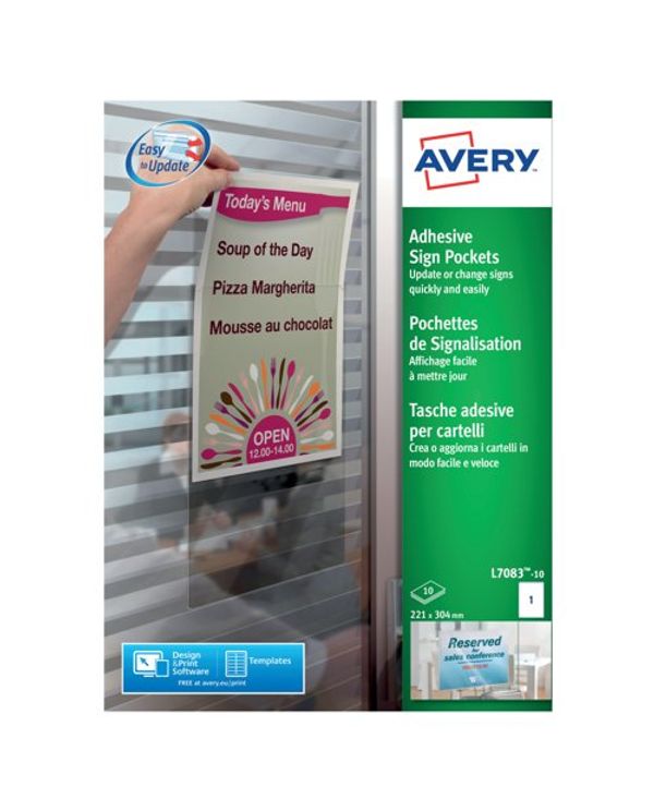 Avery Transparent Adhesive Sign Pockets A4 (Pack of 10) L7083-10