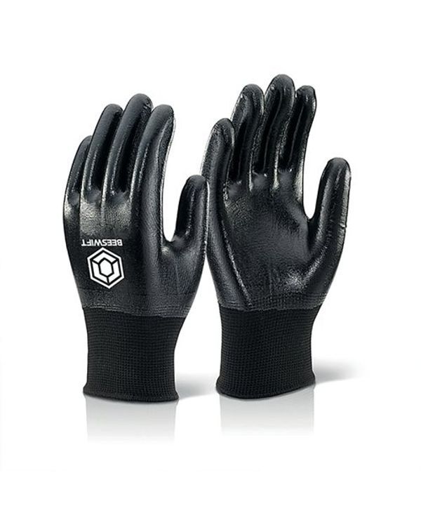 Beeswift Nitrile Fully Coated Polyester Gloves Black S NDGFCBLS