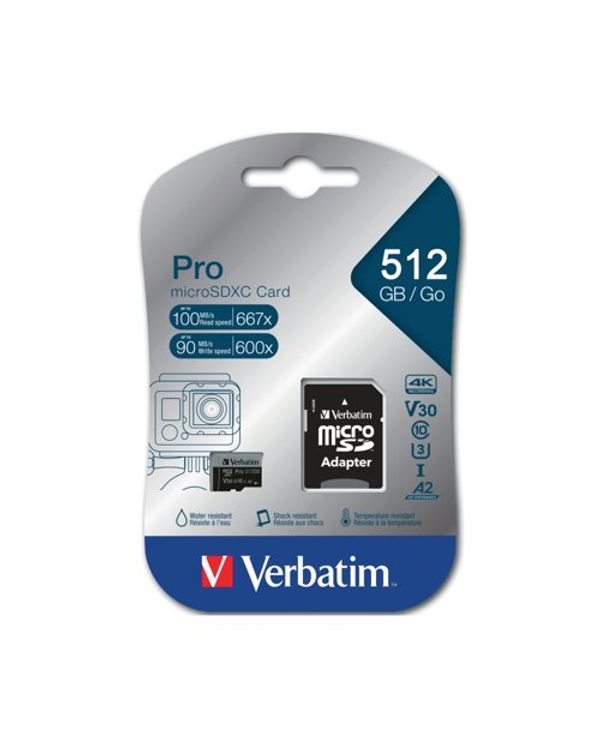 Verbatim Pro U3 Micro SDXC Memory Card 512GB with SD Adapter 47046