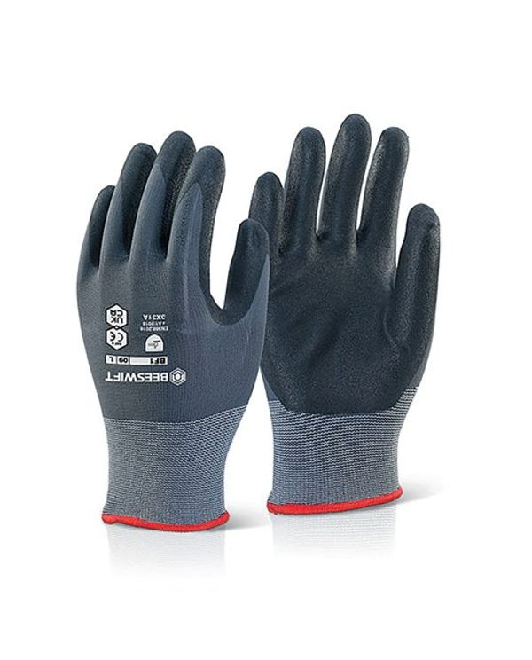 Beeswift Nitrile PU Mix Coated Gloves Black/Grey Size XS BF1XS