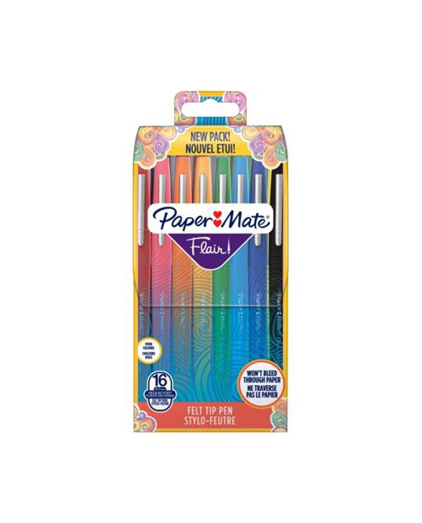 PaperMate Flair Original Felt Tip Pens Assorted (Pack of 16) S0977450