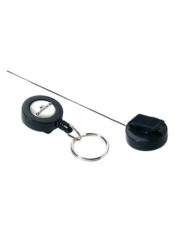 Durable Secure Retractable Keyring Badge Reel for IDs and Keys Black (Pack of 10) 8222/58