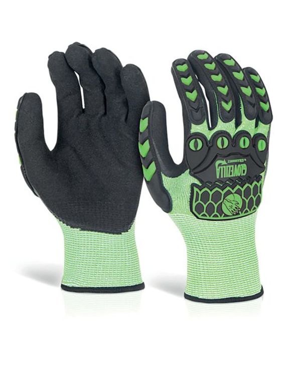 Beeswift Glovezilla Nitrile Palm Coated High Visibility Gloves 1Pr Green L GZ02LGL