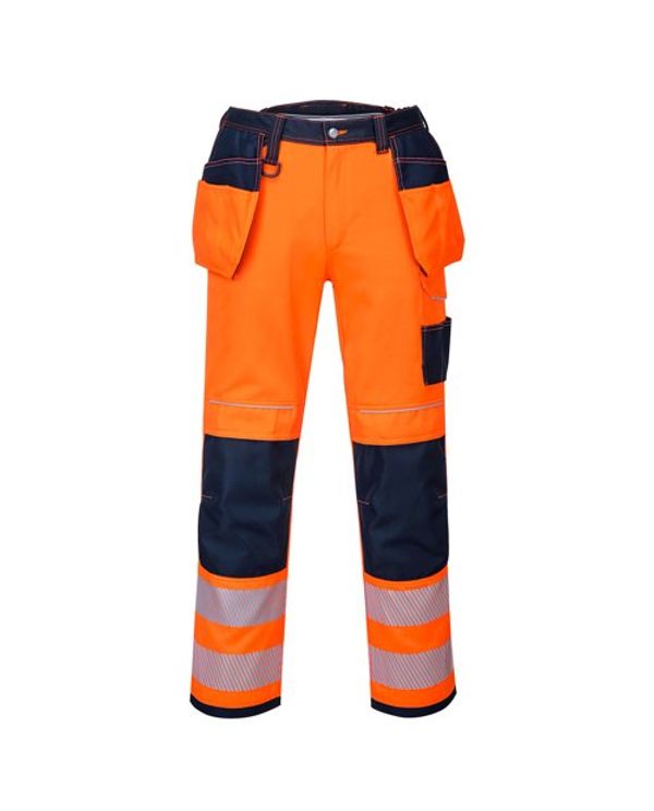Portwest PW3 Hi Vis Holster Pocket Work Trousers 38 Orange/Navy