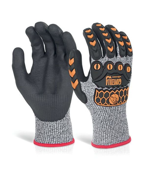 Beeswift Glovezilla Nitrile Palm Coated Gloves PVC back of Hand Protection 1Pr Grey Large GZ04GYL