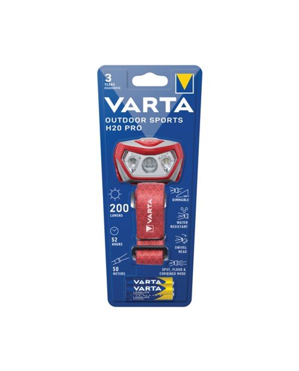Varta Outdoor Sports H20 Pro Head Torch 3xAAA 52 Hours Run Time Red/Grey 17650101421