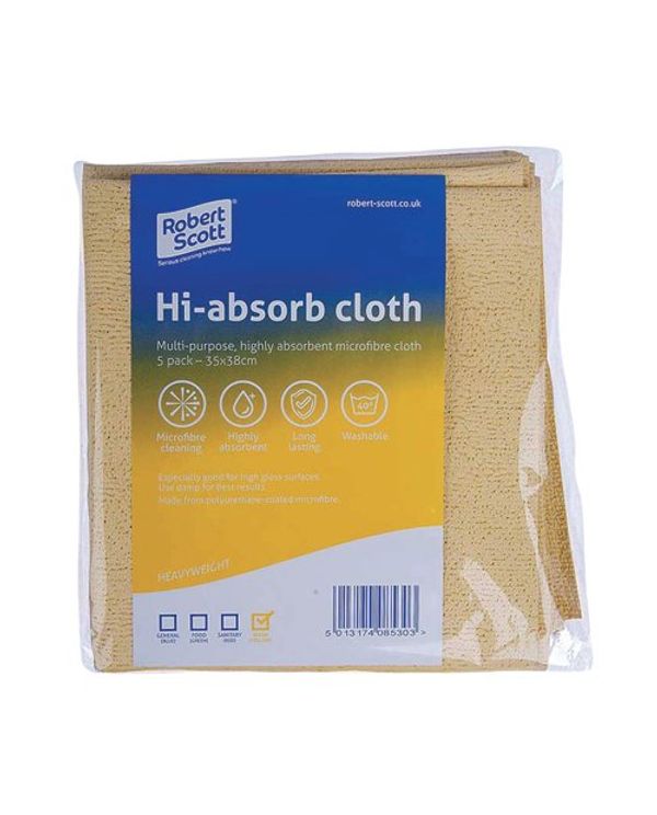 Robert Scott Hi-Absorb Microfibre Cloth Yellow (Pack of 5) 103986YELLOW