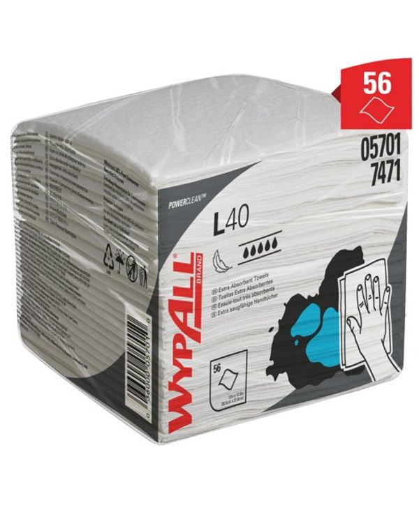 WypAll L40 Wipers 1 Ply Folded Sheets White (Pack of 18) 7471