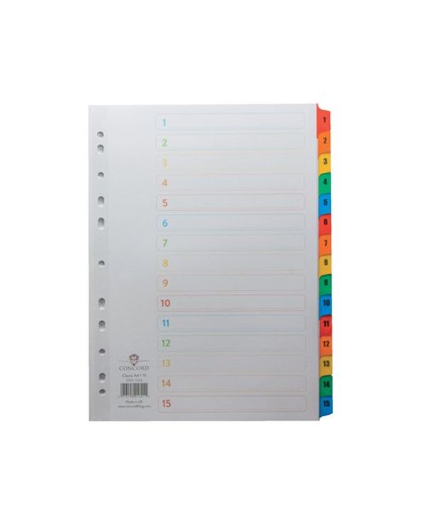 Concord Index 1-15 A4 White with Multicoloured Mylar Tabs 01601/CS16