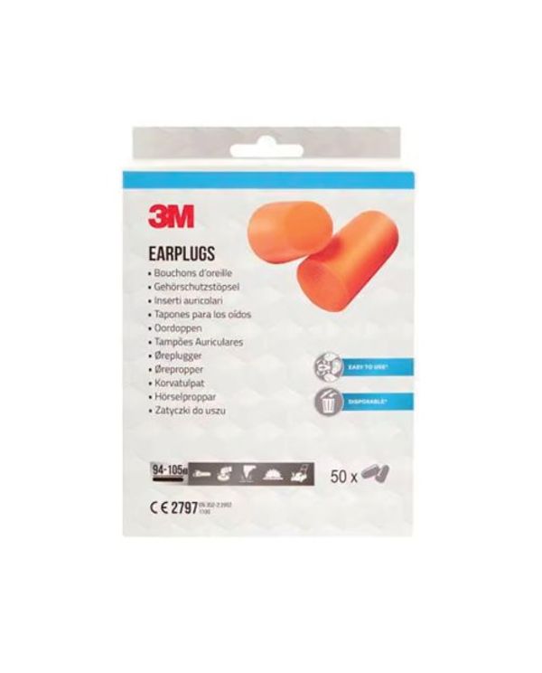 3M Disposable Earplugs 1100 Soft Foam Orange (Pack of 50) 1100-50