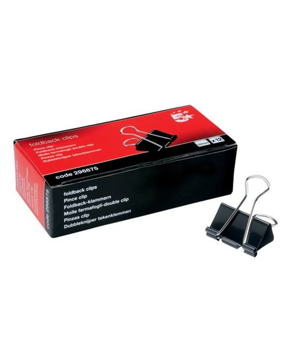 5 Star Office Foldback Clips 32mm Black (Pack of 12)