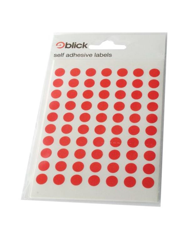 Blick Coloured Labels in Bags Round 8mm Dia 490 Per Bag Red (9800 Pack) RS003250
