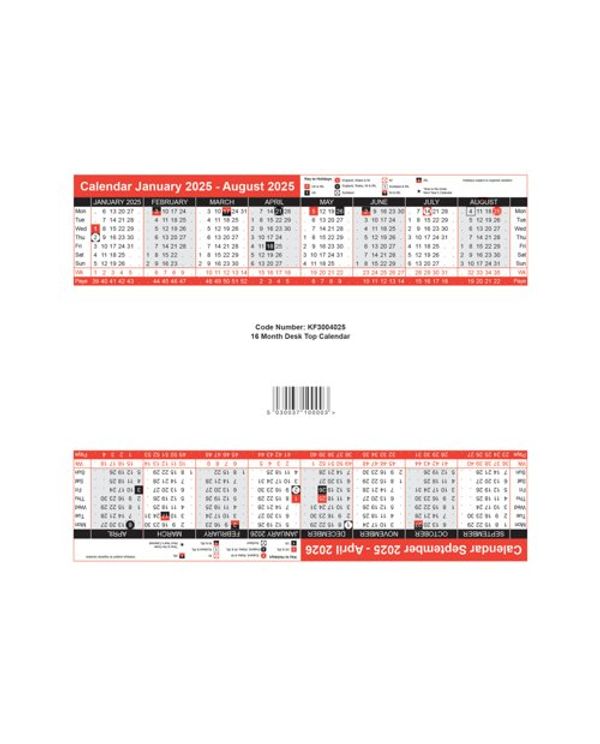 Q-Connect 16 Month Desktop Calendar 2025 KF3004025