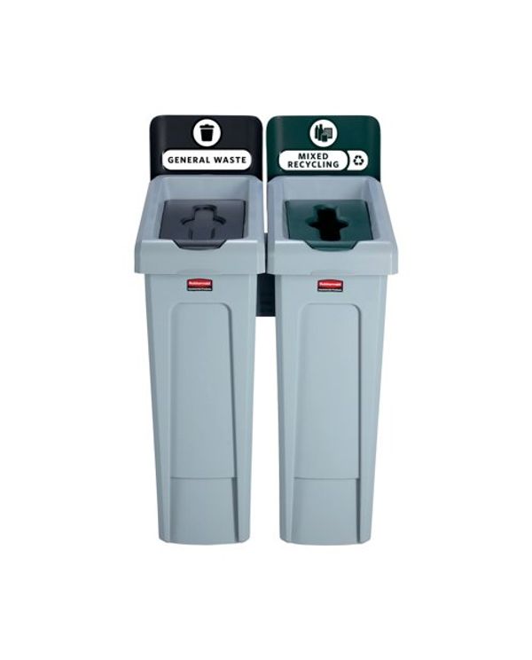 Rubbermaid Slim Jim 2-Stream Recycling Station General Waste/Mixed Recycling 2129601