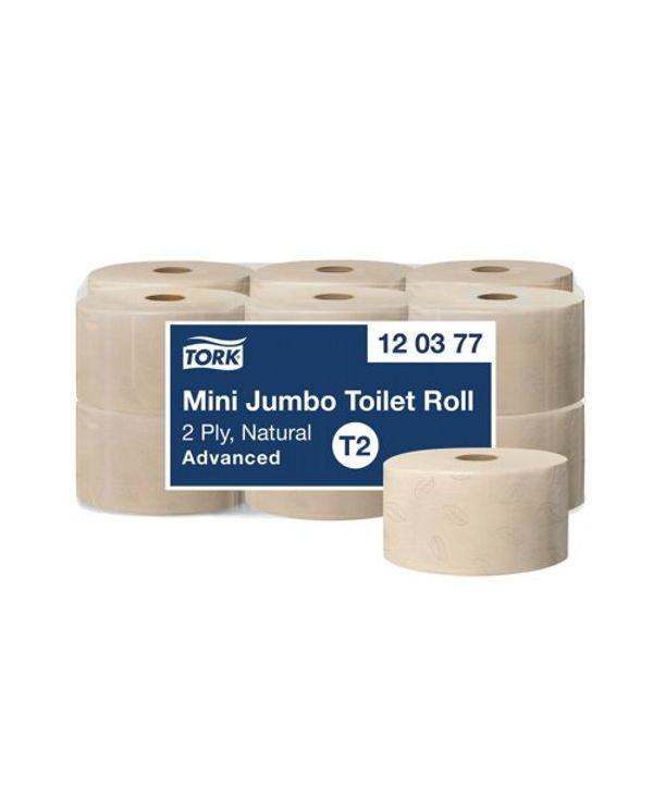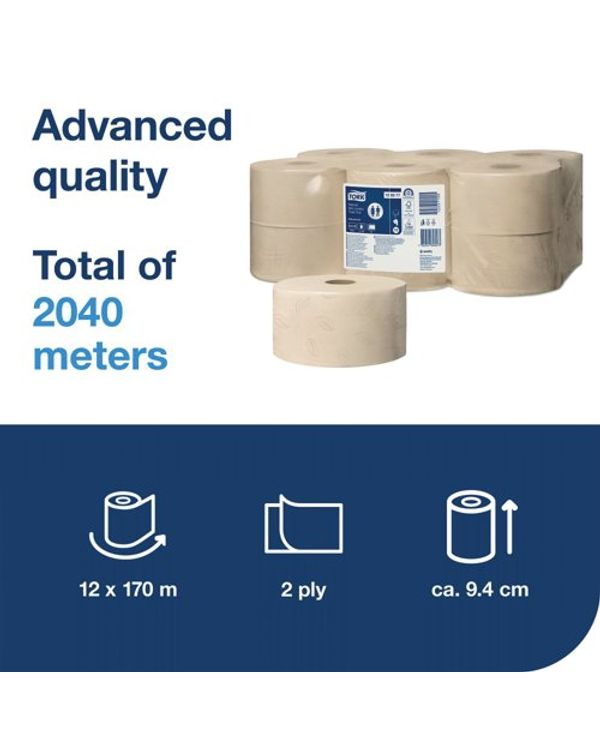 Tork Mini Jumbo 2-Ply Toilet Roll Advanced 170m Natural (Pack of 12) 120377