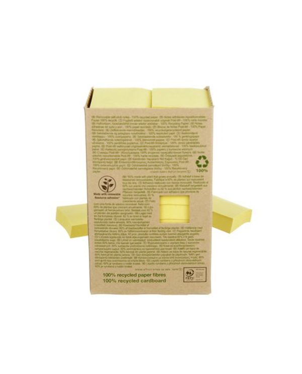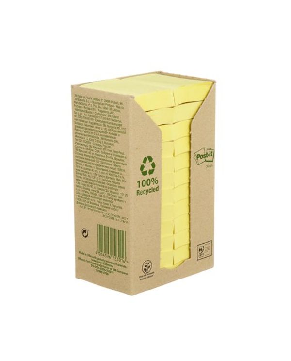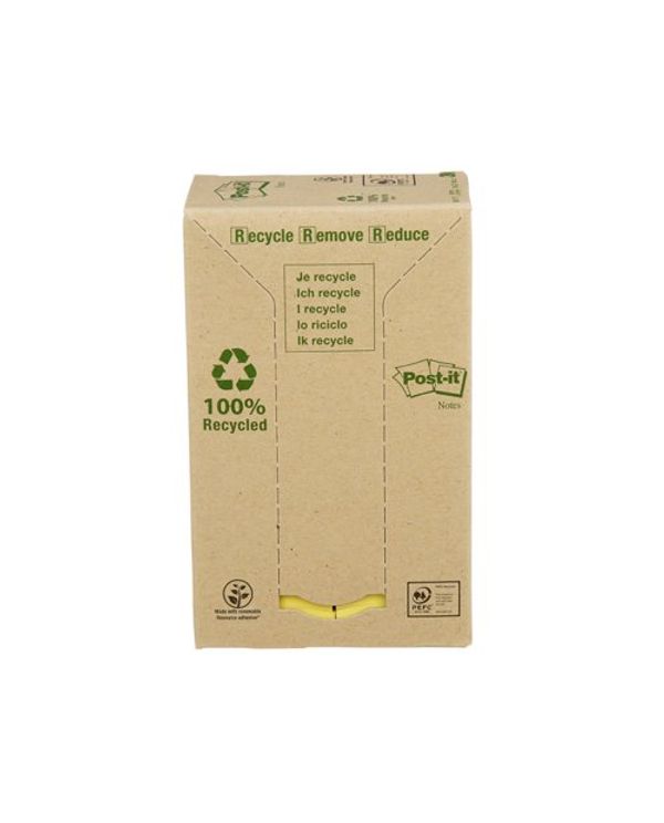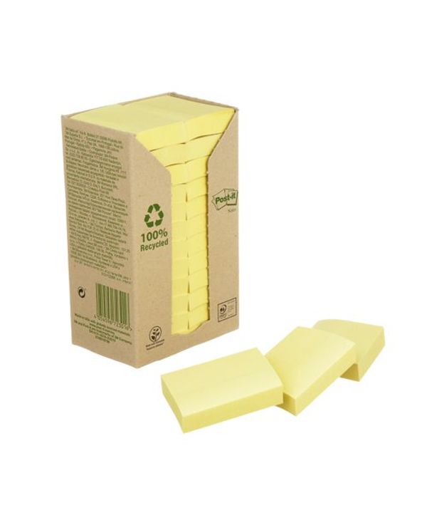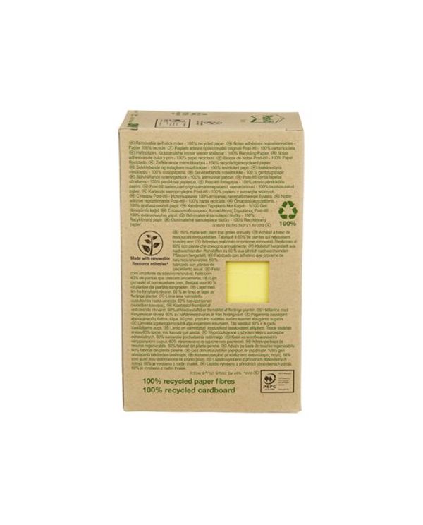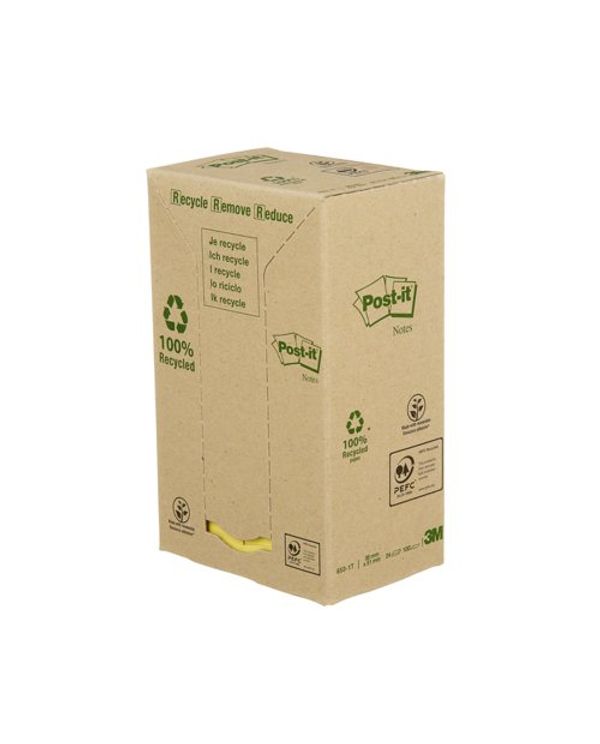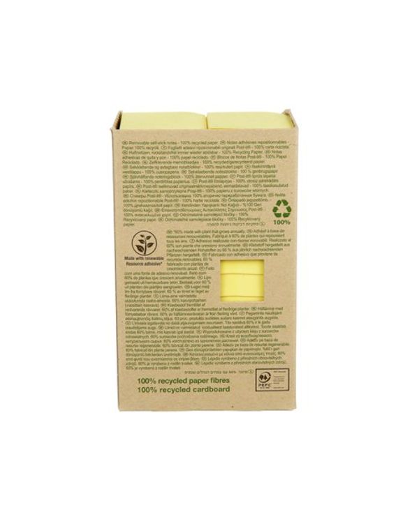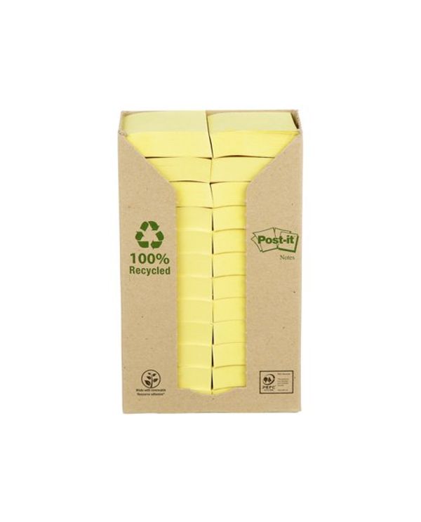 Post-it Recycled Notes 38x51mm 100 Sheets Cardboard Packaging Canary Yellow (Pack of 24) 653-1T