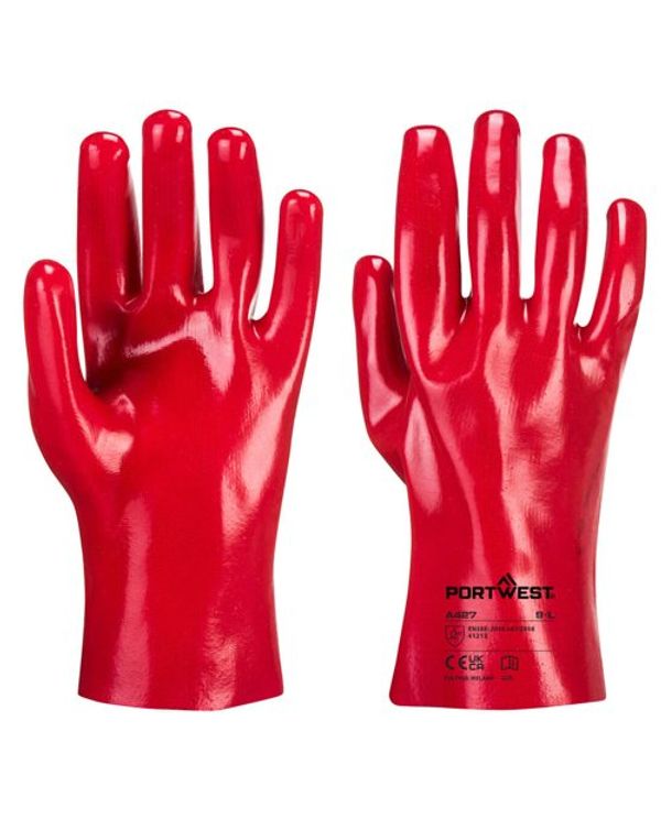 Portwest Grip 12 PVC Gauntlet 27cm XL Red (Pack of 12)