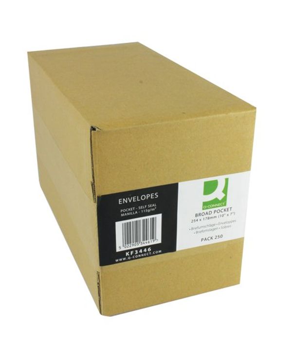 Q-Connect Envelope 254x178mm Pocket Self Seal 115gsm Manilla (Pack of 250) 8306