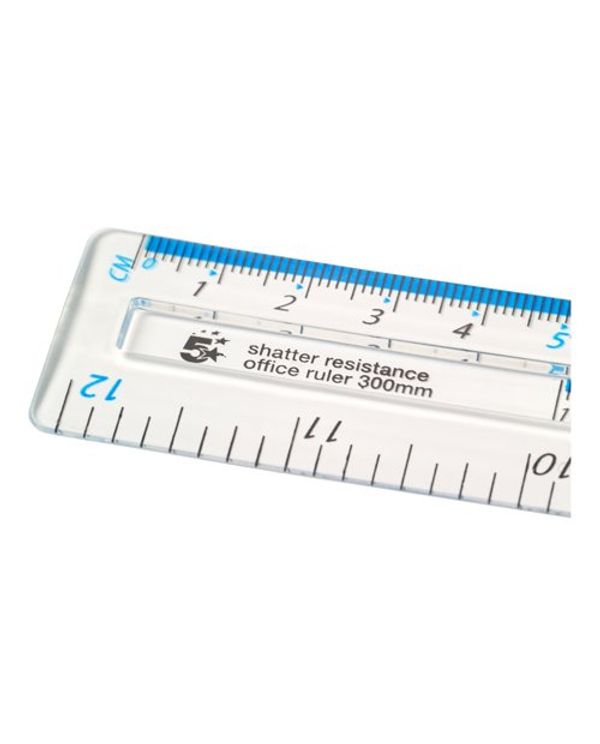 5 Star Ruler Plastic Shatter-resistant Metric and Imperial Markings 300mm Clear 513510