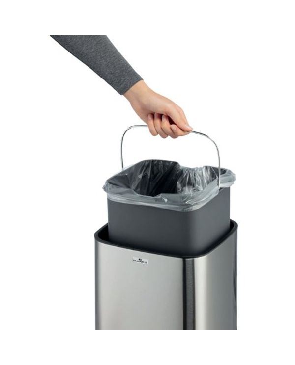 Durable Sensor Waste Bin No Touch Square 12 Litre Silver 342123
