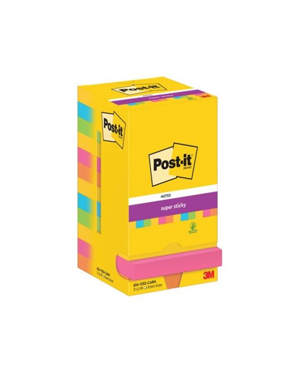 Post-it Super Sticky 76x76mm 90 Sheets Carnival Cardboard Packaging (Pack of 12) 654-12SS-CARN