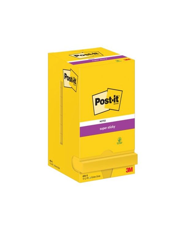 Post-it Super Sticky Notes 76x76mm 90 Sheets Cardboard Packaging Ultra Yellow (Pack of 12) 654-S