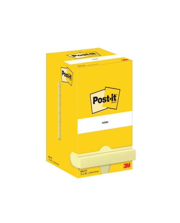 Post-it Notes 76x76mm 100 Sheets Cardboard Packaging Canary Yellow (Pack of 12) 654-CY
