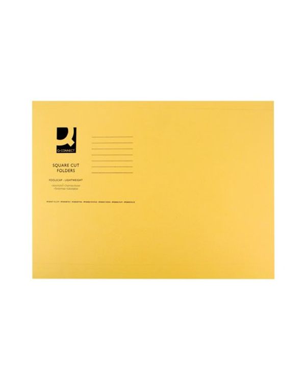 Q-Connect Square Cut Folder Lightweight 180gsm Foolscap Yellow (Pack of 100) KF26027