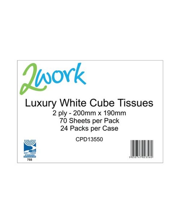 2Work Facial Tissue Cube Box 70 Sheets 2-Ply (Pack of 24) CPD13550