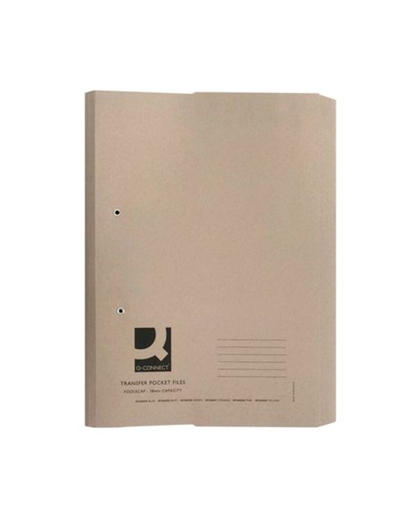 Q-Connect Transfer Pocket File 38mm Capacity Foolscap Buff (Pack of 25) KF26095