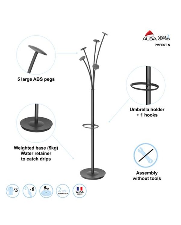 Alba Festival Coat Stand 350x350x1870mm Black PMFESTN