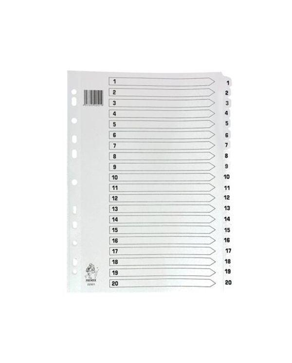 A4 White 1-20 Mylar Index Mylar Reinforced Tabs/Holes WX01531