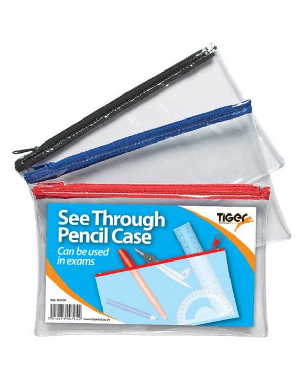 Tiger Exam Pencil Case Clear 200mm x 125mm Assorted (Pack 12) - 300794