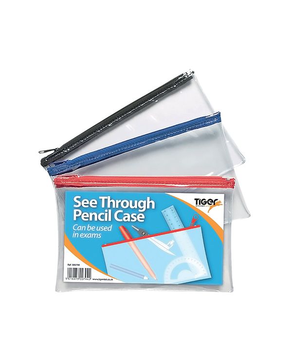 Tiger See Through Pencil Case 200 x 125mm (Pack of 12) 300794