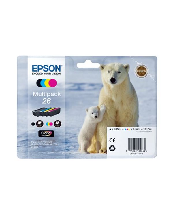 Epson 26 Polar Bear Claria Premium Ink Cartridge CMYK Multipack C13T26164010