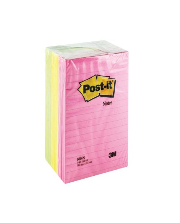 Post-it Notes XXL 101x152mm Lined Neon Assorted (Pack of 6) 660N