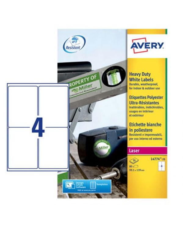 Avery Laser Label Heavy Duty 4 Per Sheet White (Pack of 80) L4774-20