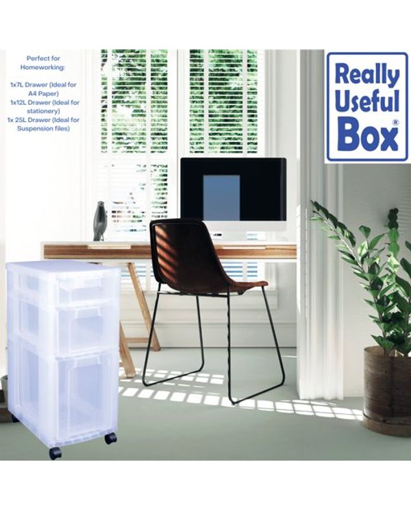 Really Useful Plastic Storage Tower 3 Drawers Clear 7L/12L/25L DT1019