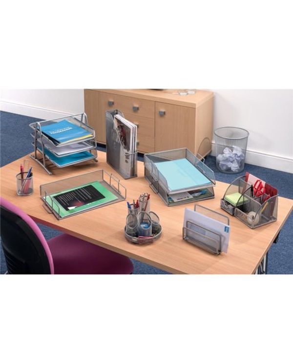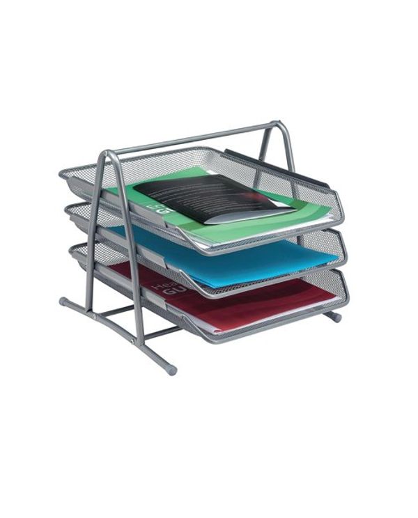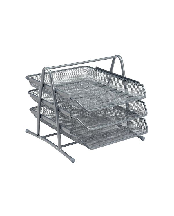 5 Star Mesh Letter Tray 3 Tier Stackable Front Load Portrait Foolscap Silver 288110
