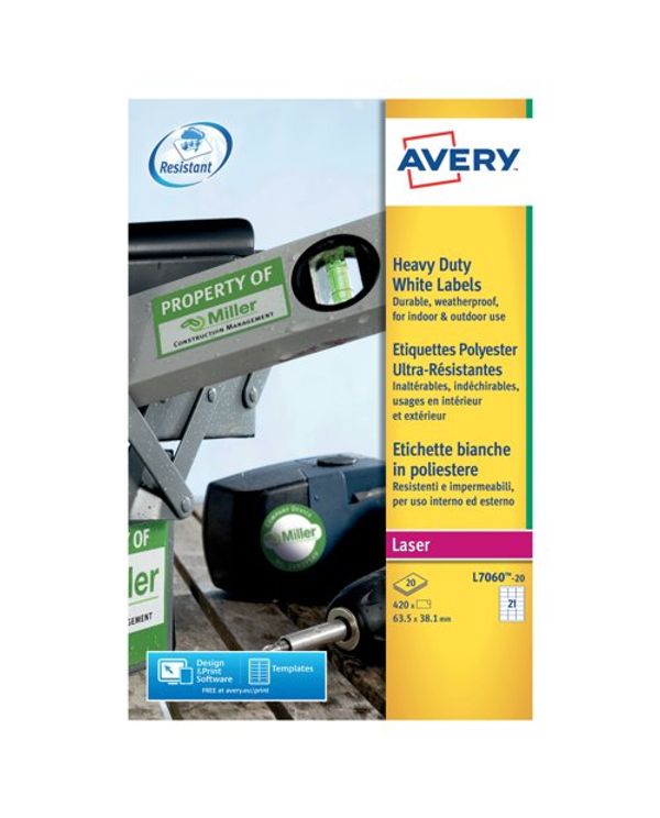 Avery Laser Label Heavy Duty 21 Per Sheet White (Pack of 420) L7060-20