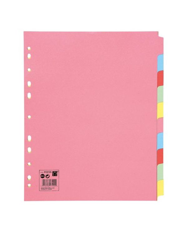 5 Star Office Subject Dividers 10-Part Recycled Card Multipunched Extra Wide 155gsm A4 Assorted