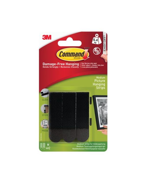 3M Command Medium Picture Hanging Strips Black (Pack of 4) 17201BLK