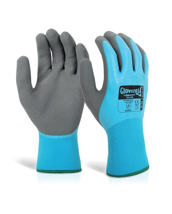 Beeswift Glovezilla LatexF/C Water Resistant Gloves (Pack of 10) Blue S GZ102BS