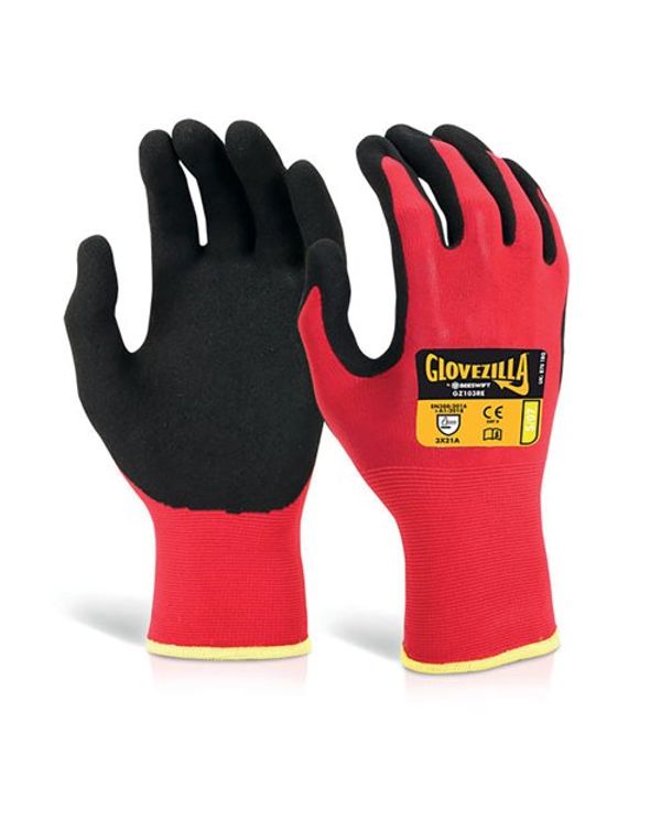 Beeswift Glovezilla Nitrile Nylon Gloves (Pack of 10) Red M GZ103REM