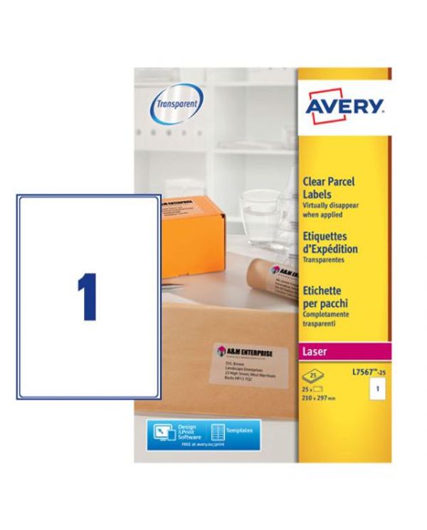 Avery Laser Parcel Label 1 Per Sheet Clear (Pack of 25) L7567-25