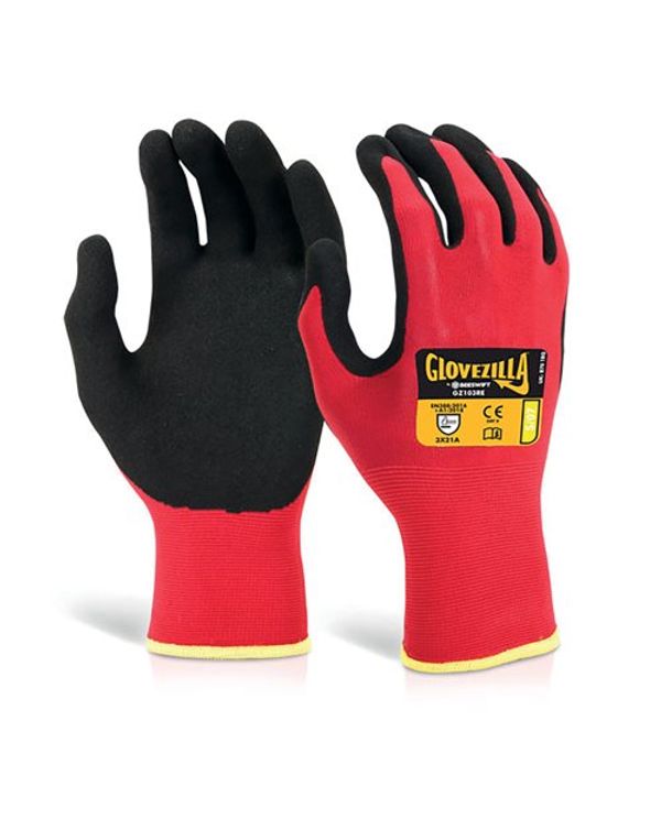 Beeswift Glovezilla Nitrile Nylon Gloves (Pack of 10) Red XL GZ103REXL